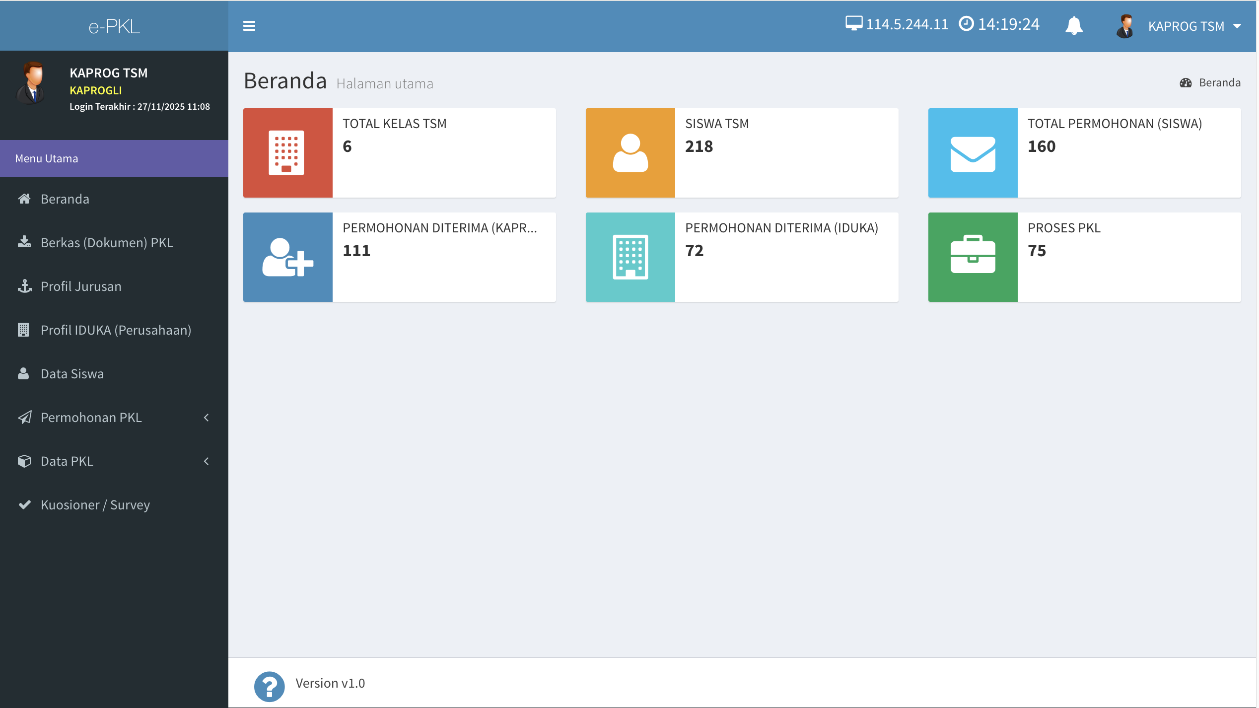 Monitoring DU/DI, presensi foto & GPS, laporan harian, penilaian pembimbing otomatis, serta dashboard real-time untuk pengawasan kegiatan PKL.