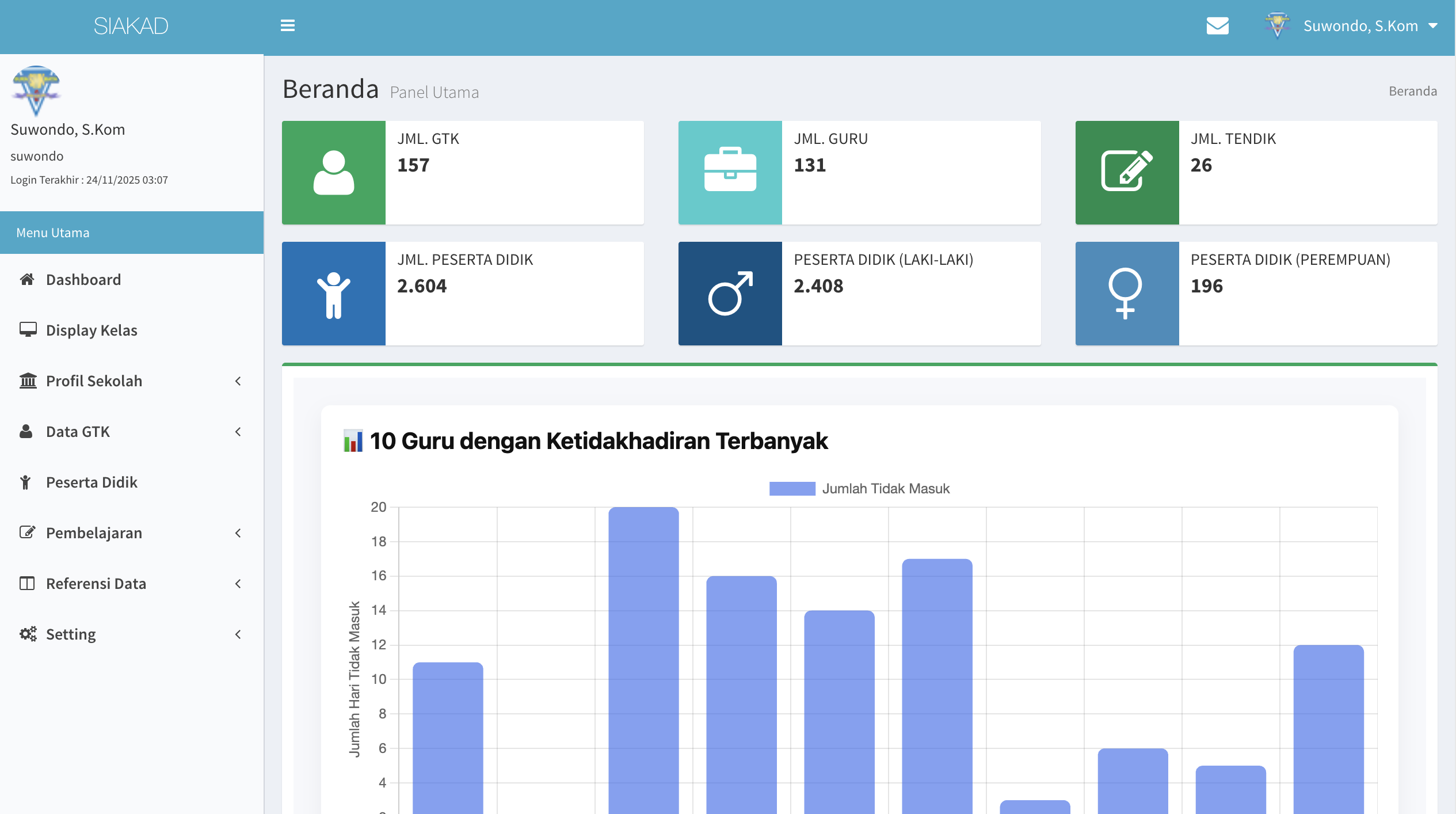 Mengelola jadwal, nilai, presensi guru QR, jurnal mengajar, raport digital, portal kelas & arsip akademik. Cocok untuk manajemen pembelajaran tingkat sekolah.